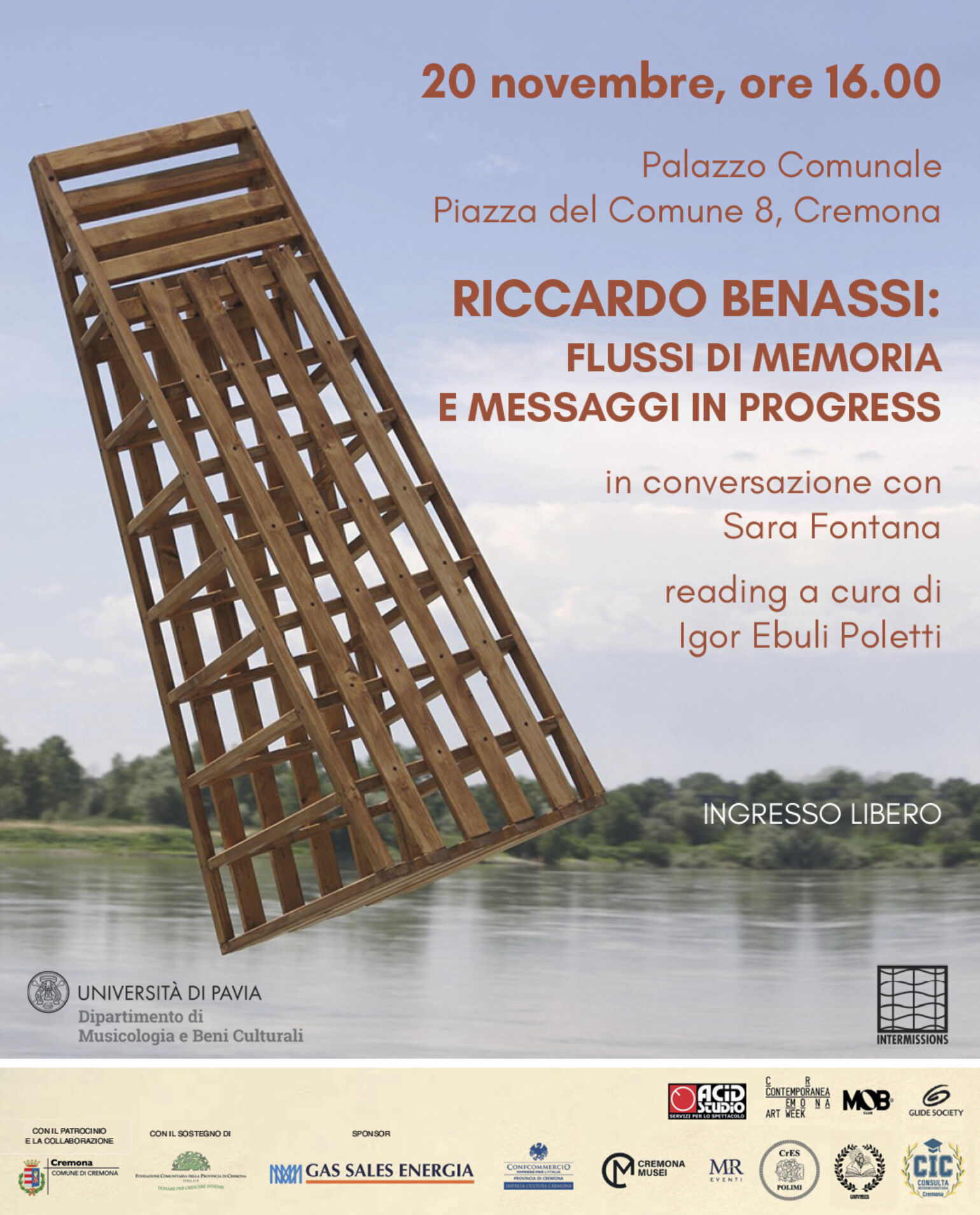 Giovedì 20 novembre, ore 16.00: Riccardo Benassi: flussi di memoria e messaggi in progress, talk presso Palazzo del Comune. Introduzione musicale a cura di Igor Ebuli Poletti e Marco Scipione.